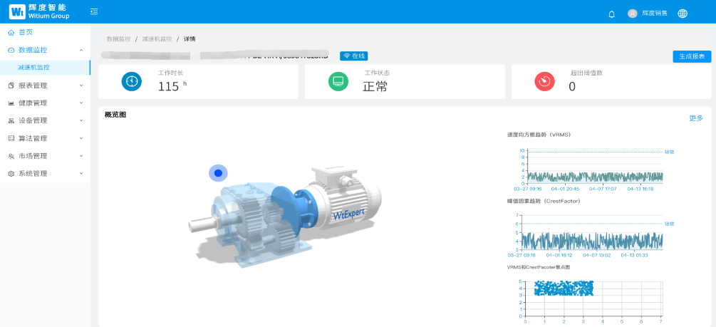 The functions of witcloud cloud platform include: access configuration of vibration sensor and edge computing gateway on reducer equipment (including subject configuration and channel configuration), remote information configuration and equipment firmware upgrade, multiple alarm modes, diary operation and maintenance management, Cloud Architecture on multi-layer edge computing gateway, database backup and retrieval, and management and control of influxdb database.