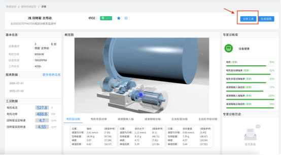 1、【分析工具】下圖為某水泥產(chǎn)線的回轉(zhuǎn)窯設(shè)備。以該設(shè)備為例,對(duì)于有算法分析基礎(chǔ)的工程師,可以點(diǎn)擊分析工具,查看設(shè)備的實(shí)時(shí)特征數(shù)據(jù)及進(jìn)行頻譜分析。