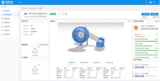 WitExpert工業(yè)設(shè)備預(yù)測性維護系統(tǒng)由硬件和軟件兩部分組成,從傳感器、邊緣計算網(wǎng)關(guān),再到軟件平臺都是Witium團隊自主研發(fā)。系統(tǒng)依托先進的物聯(lián)網(wǎng)工業(yè)AIoT技術(shù),用MEMS三軸振動傳感器采集設(shè)備的振動數(shù)據(jù)及特征參數(shù)(如振動加速度、速度、溫度等),計算并存儲設(shè)備的運行參數(shù),自動生成日數(shù)據(jù)庫、歷史數(shù)據(jù)庫及報警庫。通過振動機器學(xué)習(xí)算法,將特征參數(shù)值與模型閾值進行比較,來確定設(shè)備當(dāng)前是處于正常還是故障狀態(tài),邊緣計算網(wǎng)關(guān)根據(jù)設(shè)備故障預(yù)測性維護診斷模型分析計算,一旦出現(xiàn)異?;蛘吖收希谝粫r報警通知運行管理人員,實現(xiàn)振動預(yù)測性維護。幫助用戶查找產(chǎn)生故障的原因,識別、判斷故障的嚴(yán)重程度,為科學(xué)檢修提供指導(dǎo),切實提高工廠的安全管理水平,促進工業(yè)企業(yè)實現(xiàn)數(shù)字化、智能化轉(zhuǎn)型。